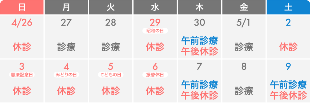 ゴールデンウィーク休診日のお知らせ
